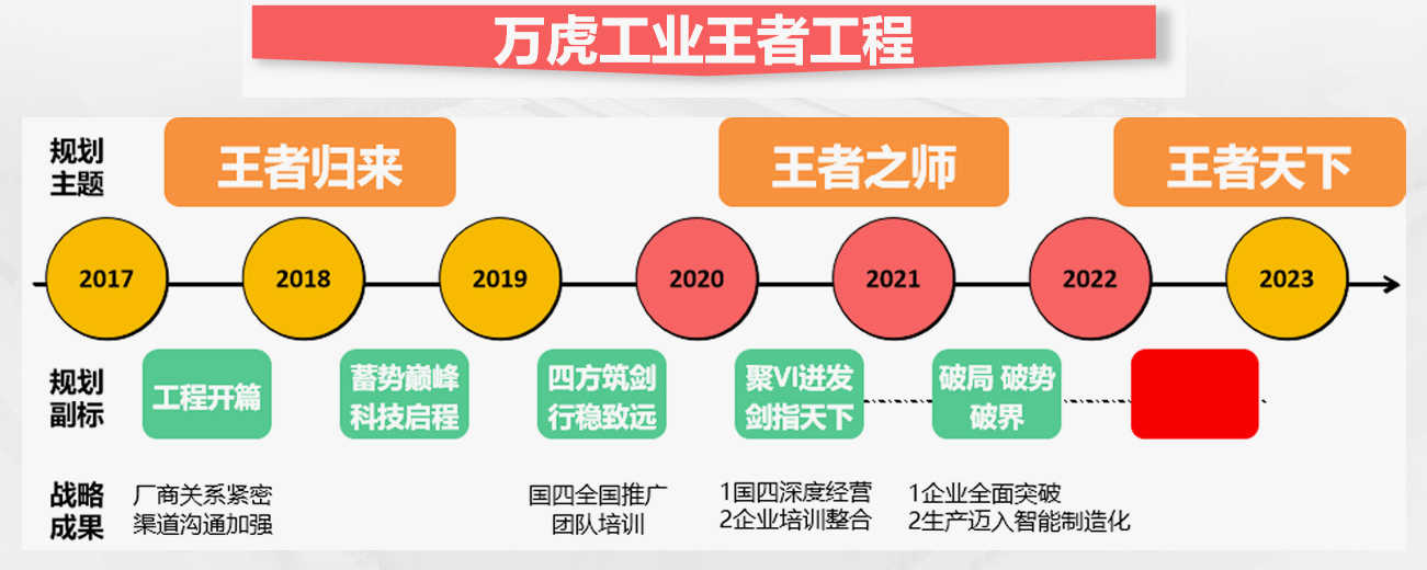 為應(yīng)對未來市場發(fā)展變化,萬虎工業(yè)積極部署未來發(fā)展戰(zhàn)略,并在基礎(chǔ)投資上進行更進一步的投入。通過王者系列工程打造,確定萬虎未來在營銷管理、終端培訓(xùn)以及品牌提升方面的優(yōu)勢。